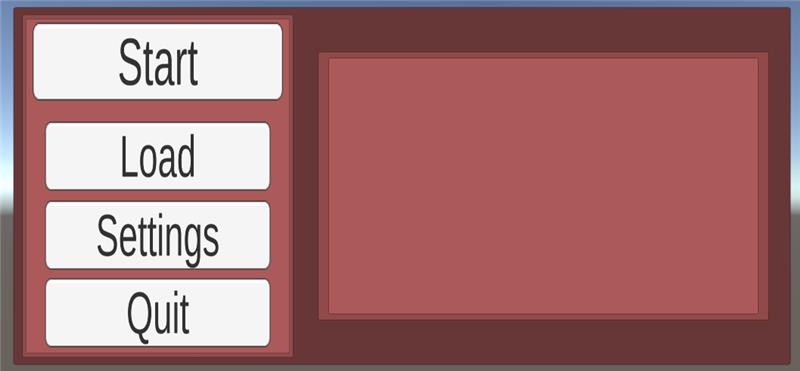 This is the menu of our game. Luke made the buttons and coded them to do their respective actions (except "load" which is shown for experimental purposes) and Ryan provided the artwork.